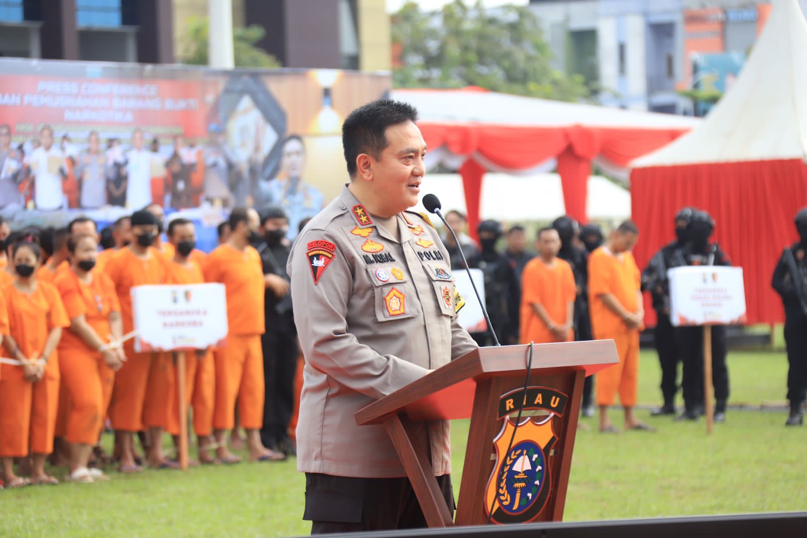Barang bukti yang dihadirkan kemudian dimusnahkan. Diantaranya narkoba minuman keras (miras), dan juga knalpot brong. Kapolda Riau Irjen Pol Mohammad Iqbal mengatakan, acara tersebut memperlihatkan keberhasilan dari Operasi Cipta Kondisi yang dilaksanakan beberapa waktu lalu.