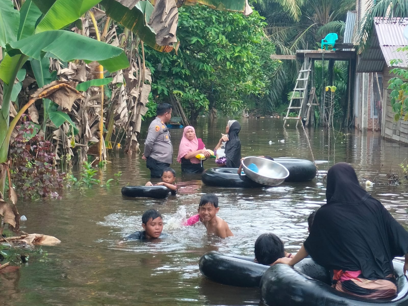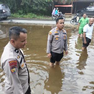 Ditambah Kapolsek kami turun langsung menerobos banjir menelusuri rumah-rumah warga yang terkena banjir.