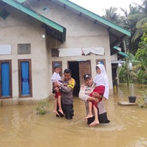 Disuasana Pemilu ini Kapolsek juga menyampaikan kepada warga yang ditemuinya untuk sama-sama menjaga Kamtibmas di situasi pemilu kemudian mengatakan “Tetap bersabar atas banjir yang melanda ini kemudian bersama sama menciptakan suasana yang rukun antar warga guna terciptanya sitkamtibmas yang aman dan kondusif.