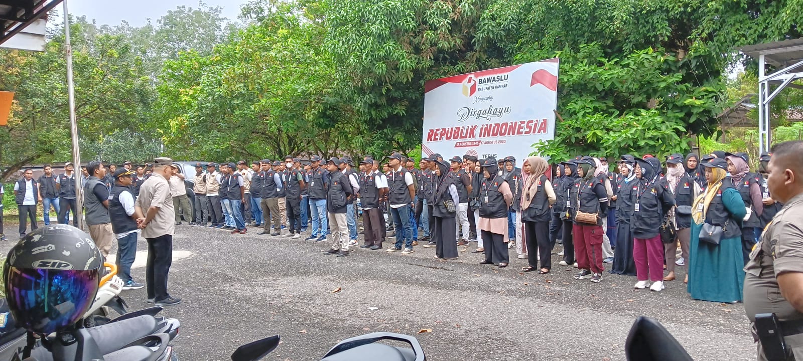 Bertindak sebagai komandan Apel dipimpin langsung Irsa dari Aparatur Sipil Negara PPPK Sekretariat Bawaslu Kabupaten Kampar. Anggota Bawaslu Kabupaten Kampar Fadriansyah dalam amanatnya menyampaikan bahwa Apel Siaga Pemilu ini dilaksanakan dalam rangka melakukan pengawasan pada masa tenang di Pemilu tahun 2024.