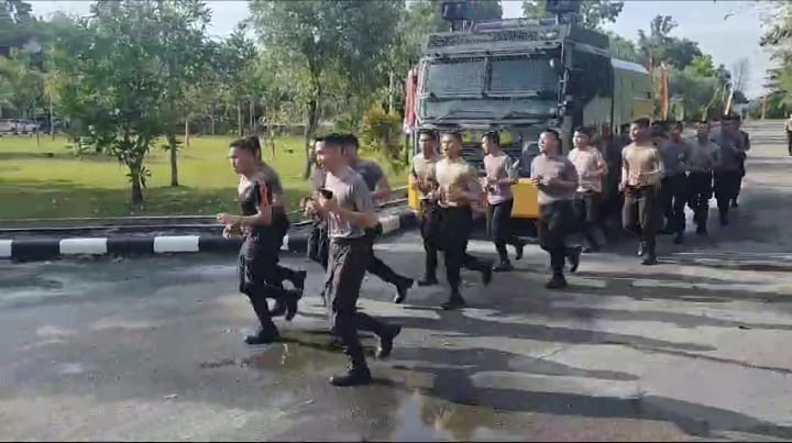 Kamparnews – BANGKINANG KOTA – Untuk menjaga tubuh tetap bugar personil Polres Kampar melakukan jogging di seputaran Kantor Bupati Kampar. Lokasi ini menjadi tempat mereka melakukan pengamanan saat digelarnya Rapat Pleno Rekapitulasi Tingkat Kabupaten Pemilu 2024. Kegiatan jogging ini juga untuk mengantisipasi cuaca yang tidak menentu, seperti hujan panas yang terjadi belakangan ini.