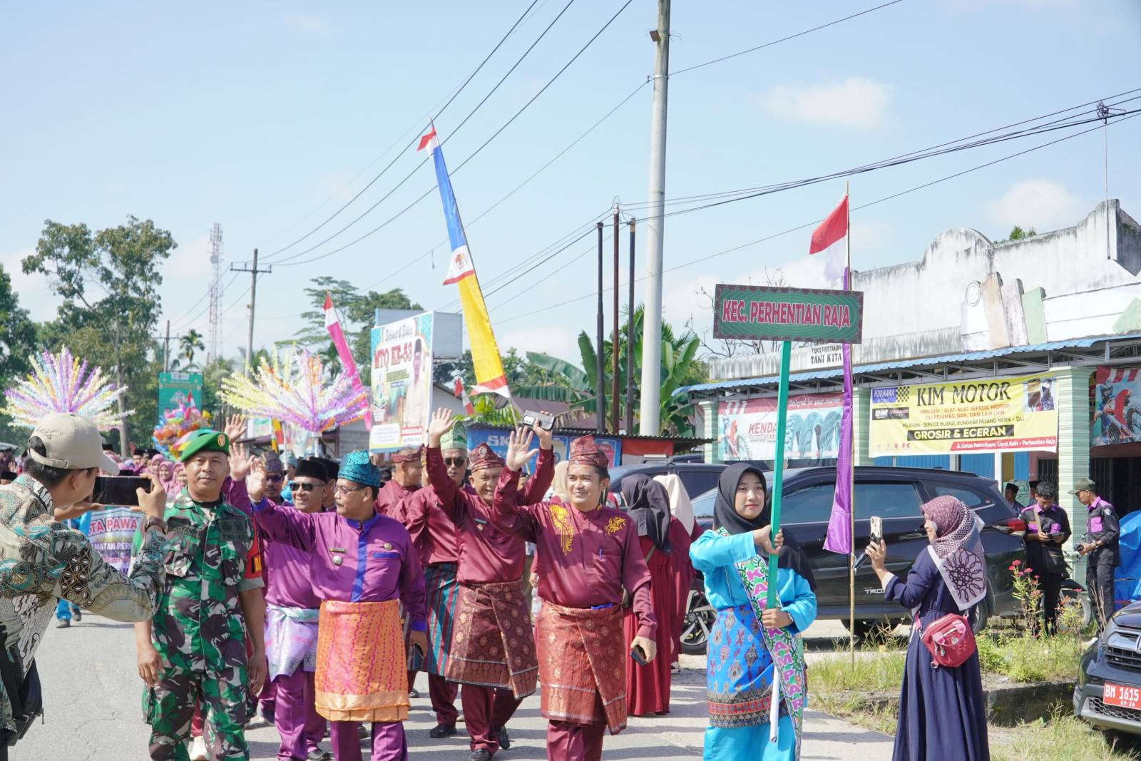 Kamparnews – PERHENTIAN RAJA – Penjabat (Pj) Bupati Kampar Hambali yang diwakili Penjabat (Pj) Sekda Kampar Yusri, melepas Rombongan Pawai Ta’ruf dalam rangka Pelaksanaan Musabaqah Tilawatil Qur’an (MTQ) Ke-53 Tahun 2024 Tingkat Kabupaten Kampar. Sebelumnya Pj Sekda Kampar melantik 121 orang Dewan Hakim yang nantinya akan menjadi juri dan penilai dengan mengambil tempat disepanjang jalan Desa Pantai Raja Kecamatan Perhentian Raja Kabupaten Kampar Kamis, (29/2/24).