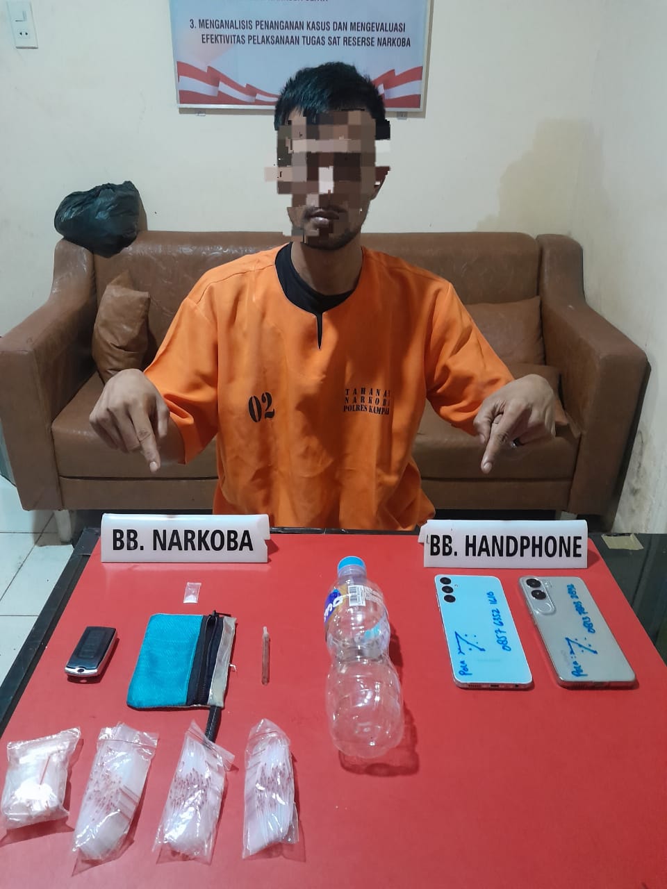 Kamparnews – KUOK – Satresnarkoba Polres Kampar berhasil mengamankan seorang pelaku Narkoba berinisial RA (28) di rumahnya di Desa Merangin, Kecamatan Kuok, Kabupaten Kampar, Selasa (12/11/24).