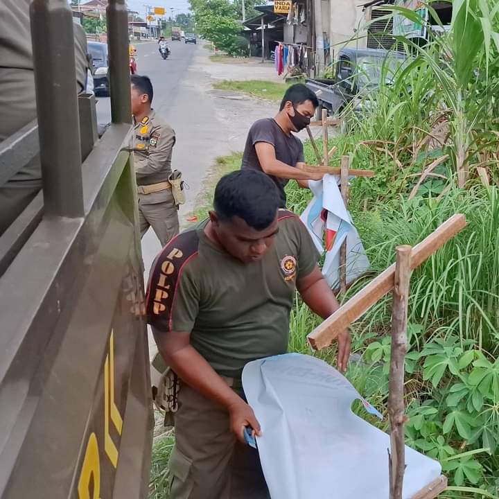 Kamparnews.com, Kampar – Satuan Polisi Pamong Praja (Satpol PP) Kabupaten Kampar laksanakan penertiban terhadap Alat Peraga Kampanye (APK) para pasangan calon Bupati Kampar dan APK pasangan calon Gubernur Senin (25/11/2024).