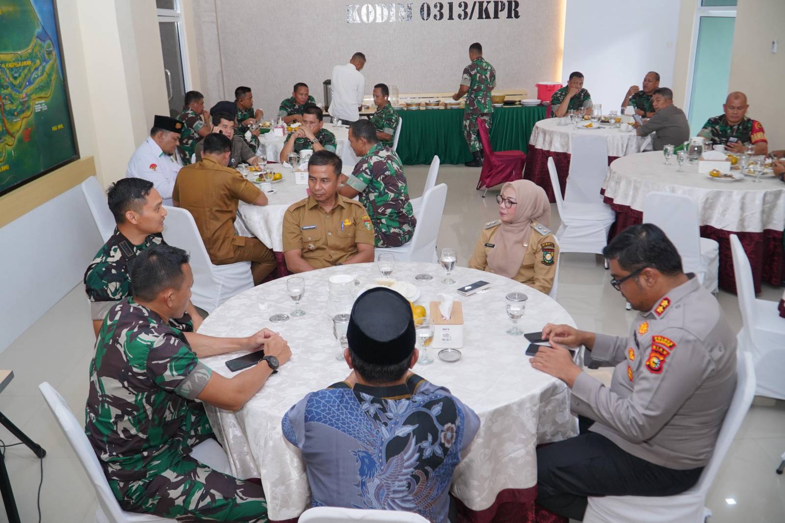 Kamparnews – BANGKINANGKOTA – Bupati Kampar Ahmad Yuzar bersama Wakil Bupati Kampar Misharti sambangi  Makodim 0313/KPR dalam rangka menjalin silaturahmi. Kehadiran Bupati dan Wakil Bupati Kampar ini disambut langsung oleh Komandan Kodim 0313/KPR Letkol Czi. Satriady Prabowo, beserta isteri  Ny. Dina Aprilia Fenandy Satriady.  Kegiatan berlangsung di Aula Makodim 0313/KPR pada Selasa (12/8/25).