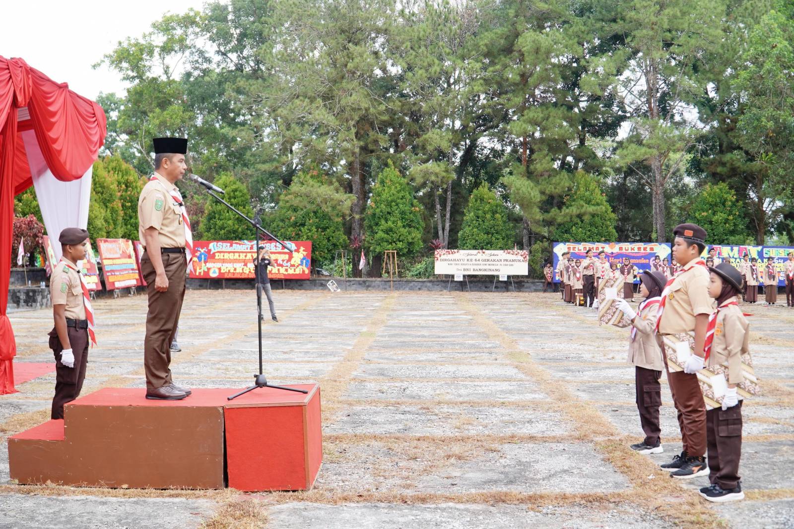 Dalam amanatnya, Bupati Kampar menyampaikan apresiasi kepada seluruh anggota Pramuka di Kabupaten Kampar yang telah aktif berperan dalam kegiatan kepemudaan, sosial, dan pendidikan karakter. “Pramuka bukan sekadar kegiatan ekstrakurikuler, tetapi wadah pembinaan generasi muda agar tangguh, disiplin, berkarakter, dan memiliki kepedulian sosial yang tinggi. Semangat Hari Pramuka ke-64 ini harus menjadi momentum untuk memperkuat peran Pramuka dalam membangun Kampar yang lebih maju,” ungkap Bupati.