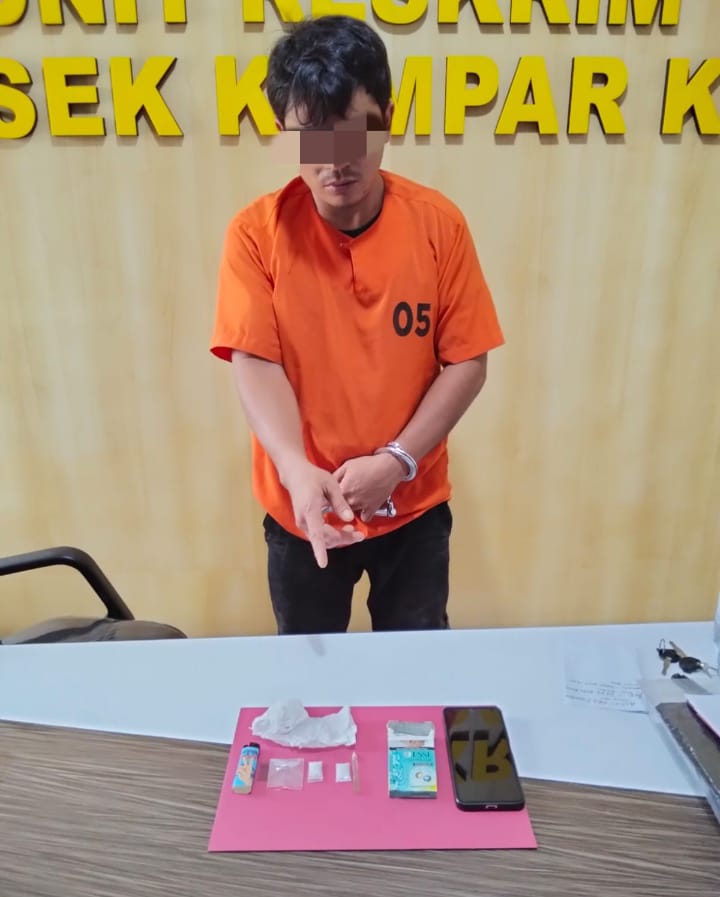 Pelaku ditangkap di Jalan Soebrantas Raya Desa Lipat Kain Utara Kecamatan Kampar Kiri, Kabupaten Kampar. “Ada tiga paket narkoba jenis sabu-sabu dengan berat bruto +- 2,19 Gram diamankan dari hasil penggeledahan pelaku,”jelas Kapolres Kampar AKBP Boby Putra Ramadhan S melalui Kapolsek Kampar Kiri Kompol Rusyandi Zuhri Siregar.