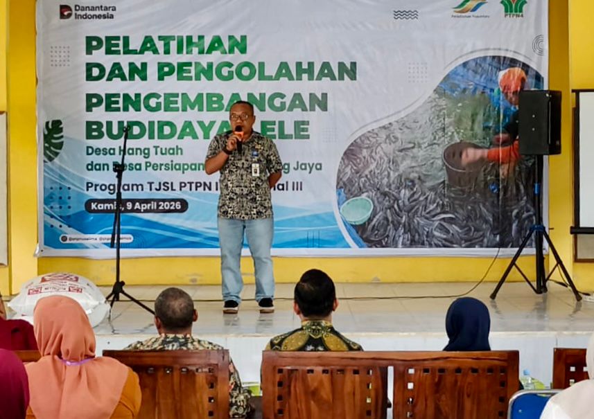 Demikian ditegaskan Kadis Perikanan Kabupaten Kampar Zulfahmi yang diwakili oleh Kepala Bidang (Kabid) Penguatan Daya Saing Hasil Perikanan Jhon Mainir pada pembukaan kegiatan Pelatihan dan Pengelohan Pengembangan Budidaya Lele untuk peningkatan Ekonomi Masyarakat yang ditaja oleh PTPN IV Regional III Pekanbaru di Desa Hang Tuah Kecamatan Perhentian Raja Kabupaten Kampar pada Kamis (9/4/26).