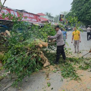 Sinergi Polisi-TNI-Masyarakat, Jalan Raya Pekanbaru-Bangkinang Bebas Pohon Tumbang